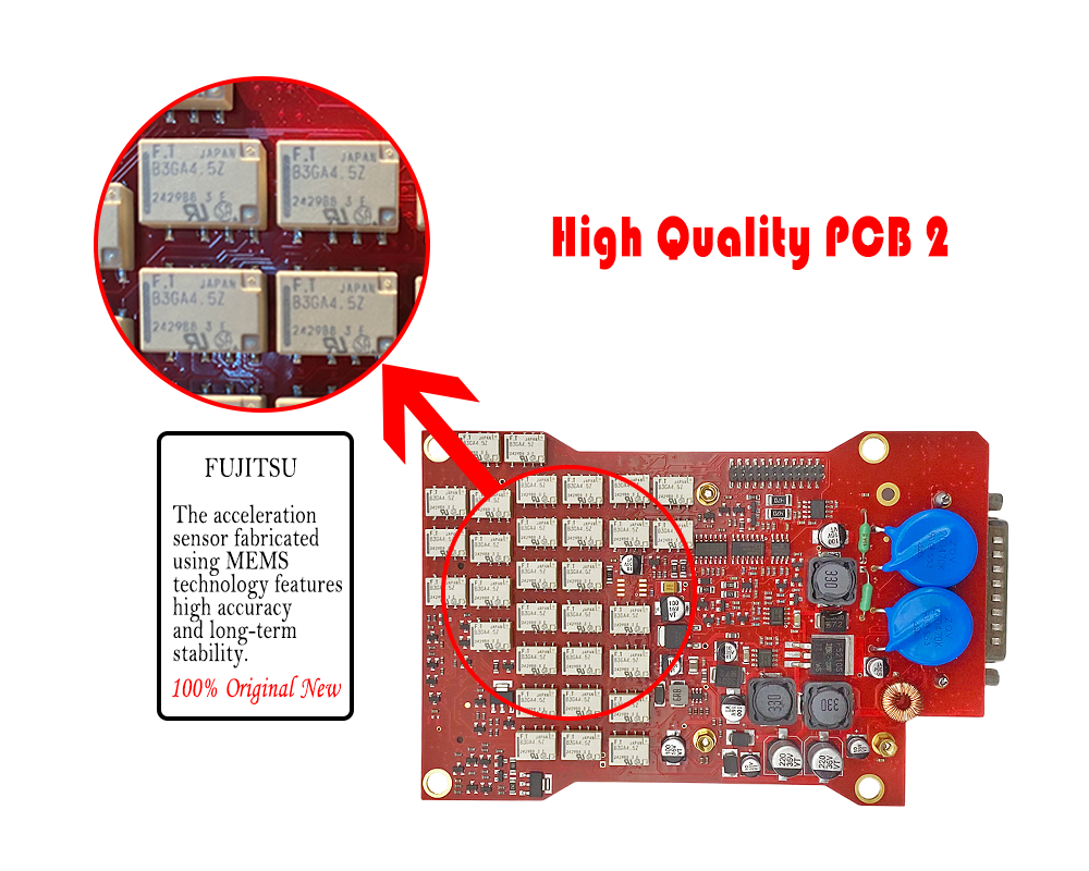 The motherboard(PCB) is different from the Mercedes-Benz diagnostic tools available in the market (such as MB Star C4, MB Star C5). It uses 100 original chips, which have excellent performance and provide more stable and accurate diagnostics. The service life is also longer.